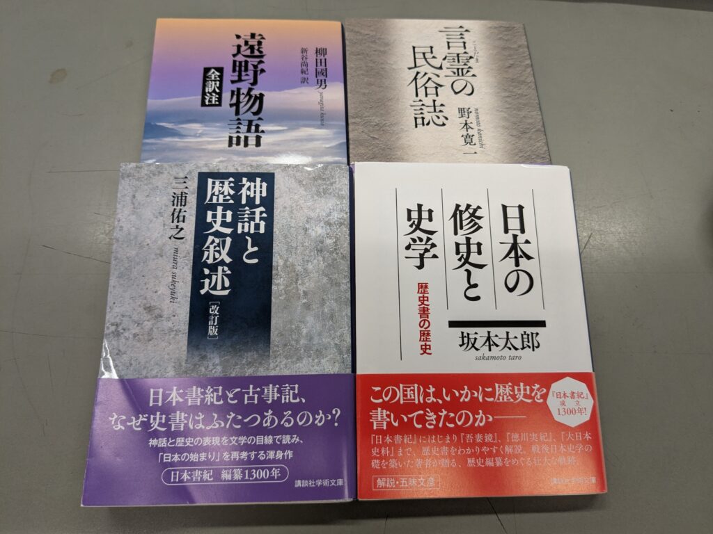三冊目は野本寛一『言霊の民俗史』です。遠野物語とテイストは似ていますが、内容には差があります。実は自分が前期で履修した科目で言霊について触れた授業がありまして。それに啓発されてつい買ってしまったという感じです。その授業では和歌と言霊には大きな相関関係がある的なことを言っていました。もしこのブログを読んでらっしゃる人がいたら、是非とも履修してみてください。「日本の思想の歴史」という授業です。