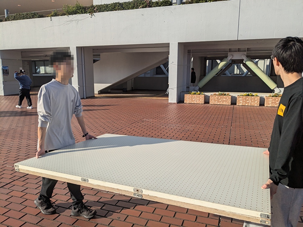 向かった先でボードを貰い、展示室まで持って帰らないといけないのですが、これがなかなかに骨が折れる作業なのです。一枚ならまだしも二枚を運ばないといけません。しかも、この輸送に掛けられる人手があまり多くなかったので、何回も往復することになってしまいました。