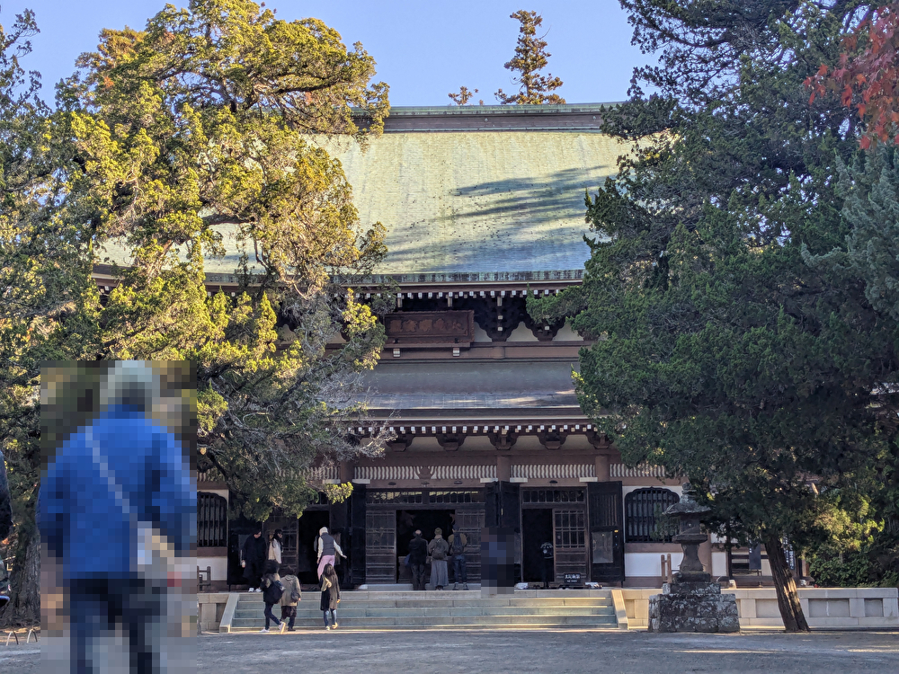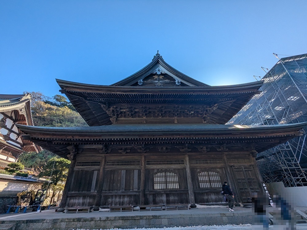 見た感じ太い柱と細い梁が複雑にかみ合った設計のようです。一応禅宗様建築なのかもしれませんが、所々特徴と違う箇所もありました。特に、太い柱を使った設計は禅宗様建築ではあまりみられないのではないでしょうか。そのまま奥へ向かうと、仏殿があるのですが、残念ながら、現在改修工事を実施中でした。もともと芝の増上寺にあったものを移築させたんだとか。仕方がないので、隣にある法堂へ向かいます。