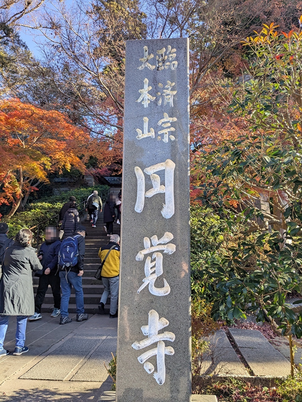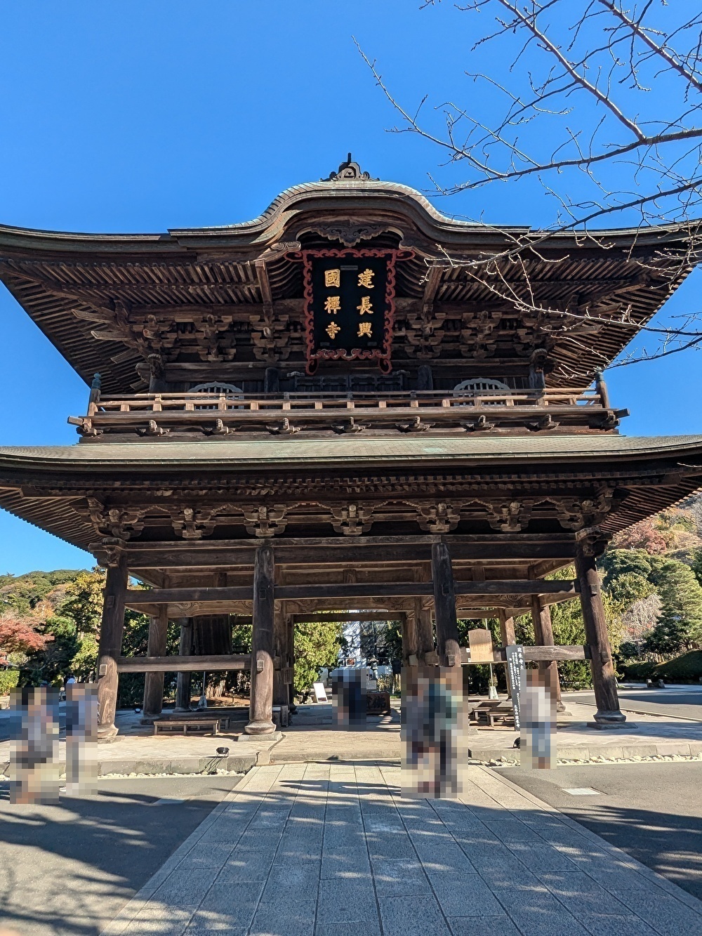 朝9時10分。北鎌倉駅に到着しました。まだ空気は冷たいですが、すでに多くの人で駅周辺はごった返しています。何を隠そう、最初の目的地、円覚寺と北鎌倉駅は目と鼻の先にあるのです。国籍・老若男女問わず無数の人が今から参拝しようとしているのです。石の階段を登った先で目に飛び込んできたのは大きな門でした。