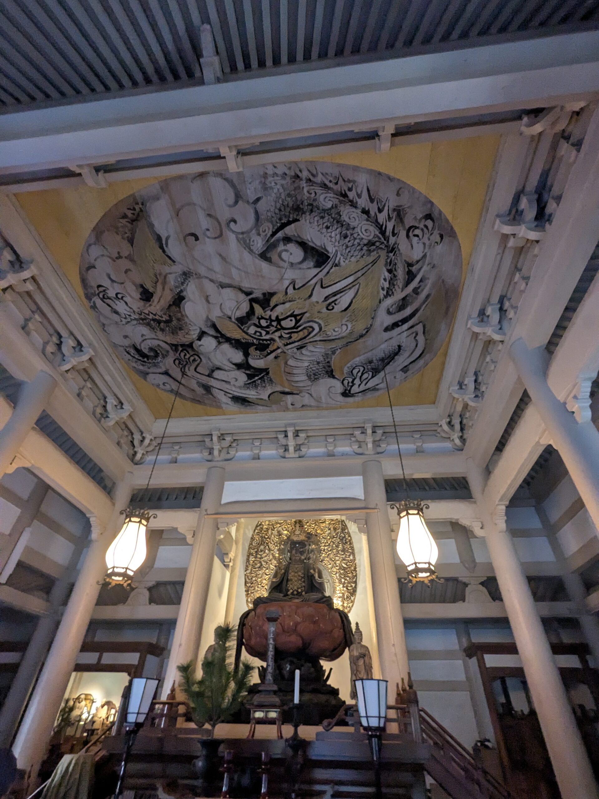 見た限りでは、仏殿も禅宗様な気がします。中には廬舎那仏の像があり、天井には龍の絵が描かれていました。この龍の絵自体は最近になって描かれたものなんだとか。