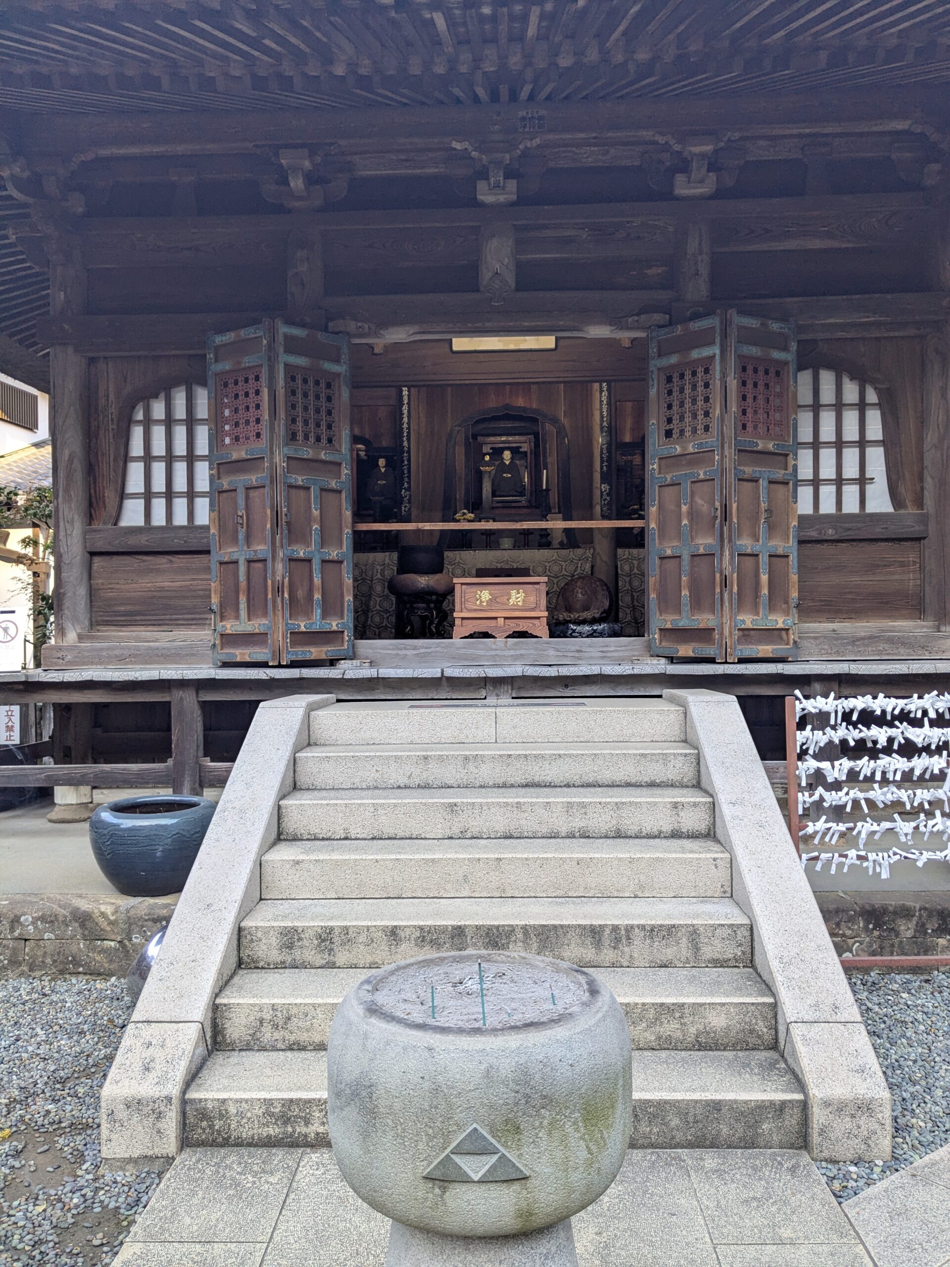 続いて向かったのは円覚寺のほぼ向かいにある浄智寺。このお寺は鎌倉五山の第四位に叙されている大変歴史の長いお寺です。そんな浄智寺ですが、実際に行ってみると、円覚寺ほどにぎやかではない印象を受けました。派手で大きな建物がたくさんあるわけではありませんが、その分静かで厳かな雰囲気があります(と言いつつも、三脚立ててライブ配信(?)をしてらっしゃる外国人の方がいらっしゃいました)。そんな浄智寺は門に大きな特徴があります。門と聞くと、文字通り漢字の”門”の形をしていると想像しがちですが、ここの門は鐘楼門なのです。二層構造で、下の層が門、上の層には梵鐘をさげる堂という構造になっていました。