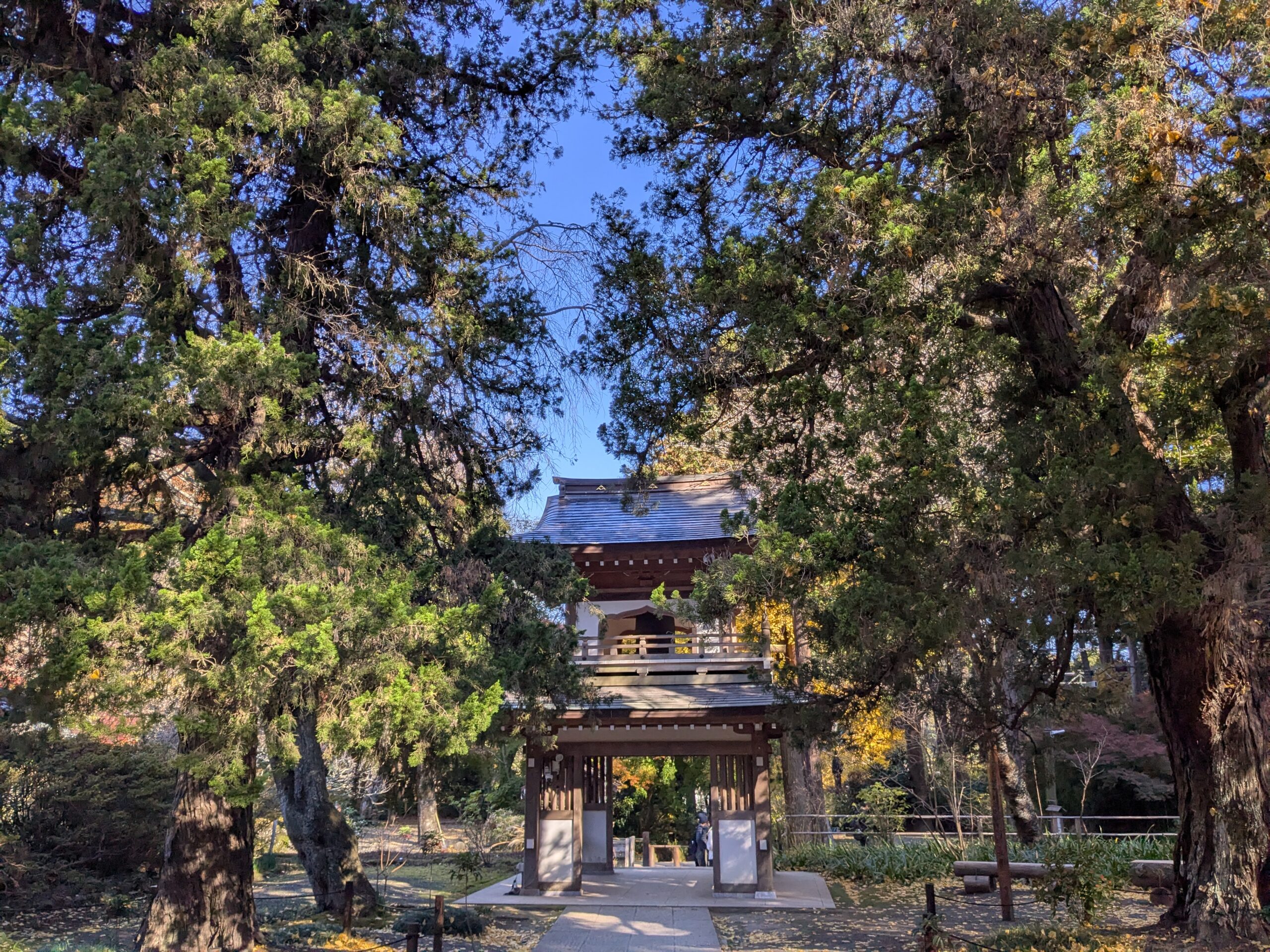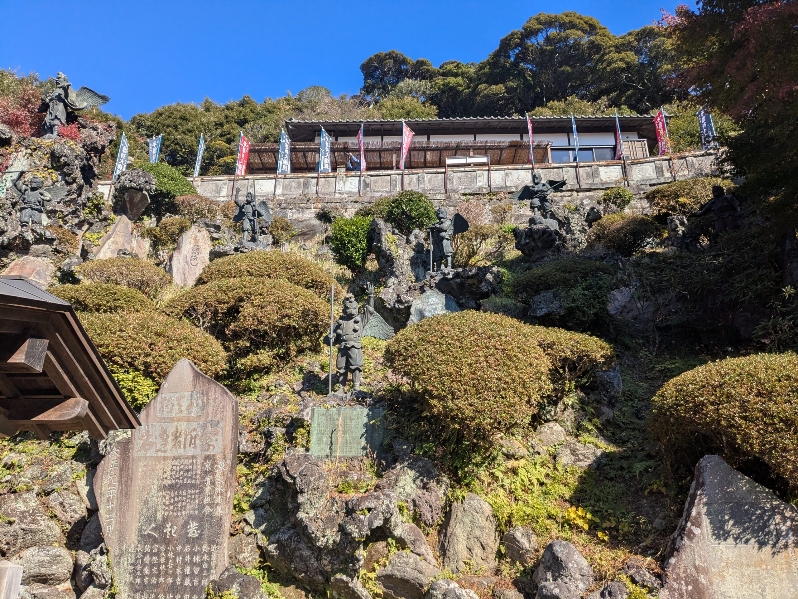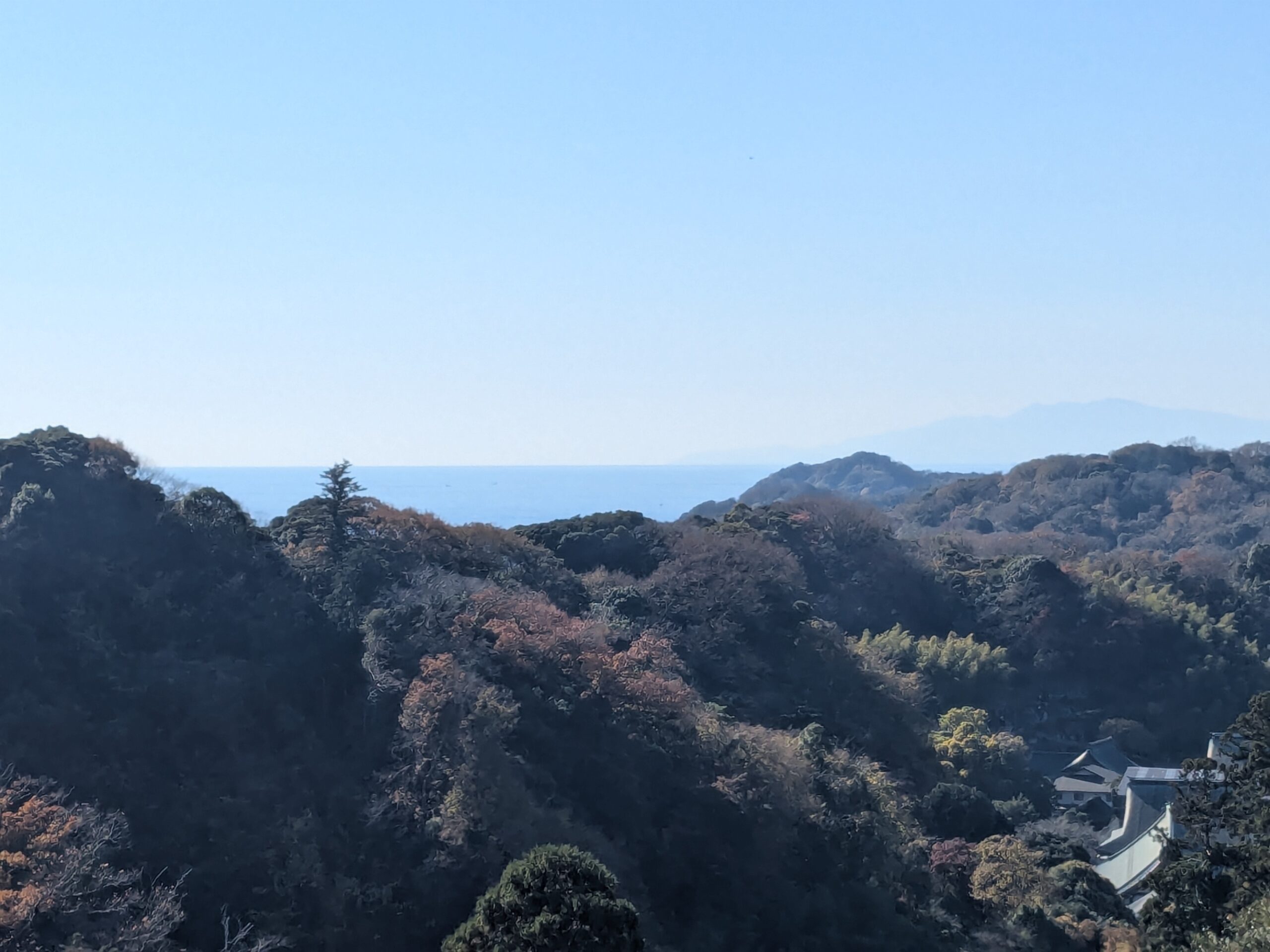 天狗の像が大小合わせて12体。鎮守神である半僧坊大権現を祀る社が裏山にあります。しかも、ここからの眺めは素晴らしく、富士山や海も見えました。やはり、鎌倉は冬に行くのがいいですね。紅葉が景色を二割増しくらい綺麗に見せてくれています。