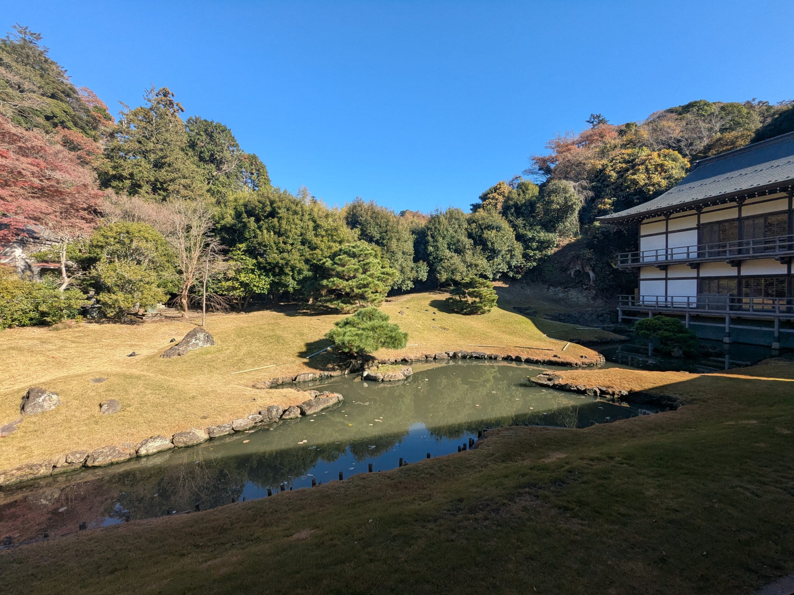 また、円覚寺は庭園も素晴らしく、かの夢窓疎石が作庭したとされる妙香池は紅葉も相まってとても美しかったです。今の時期にしか見られない枯山水庭園を楽しめました。