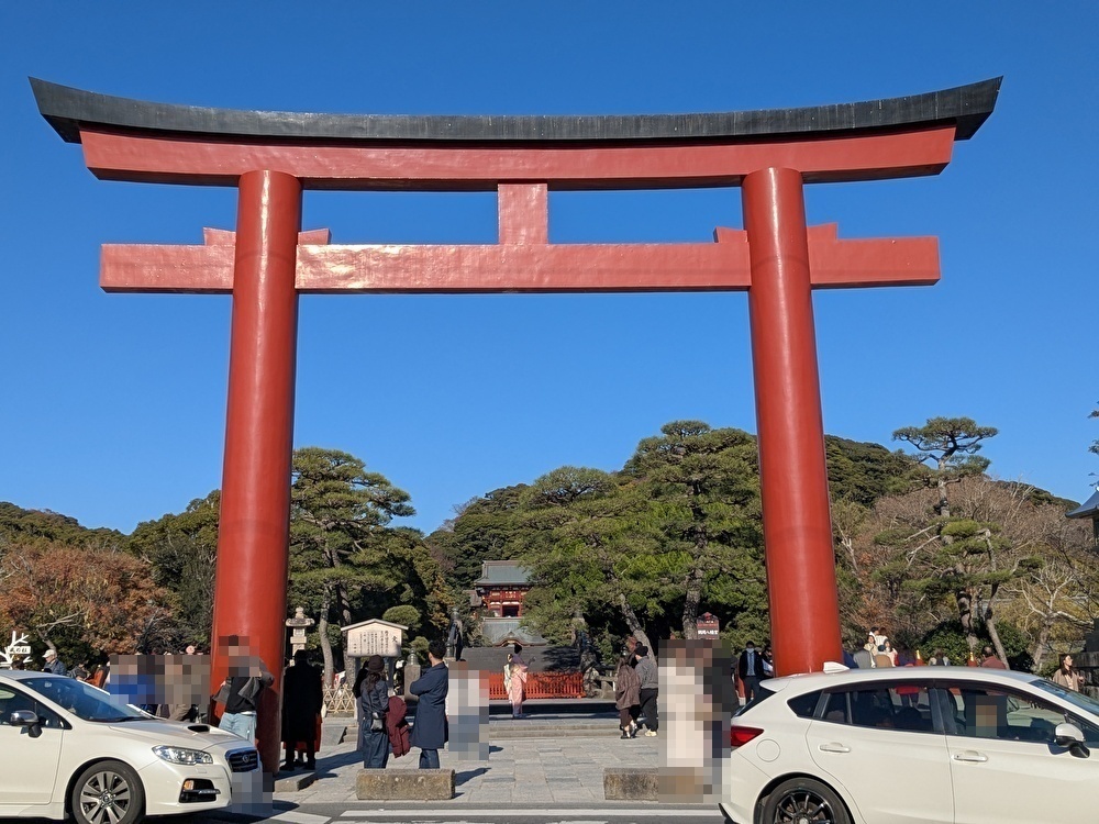 ここから少し歩きます。次に向かうのは鶴岡八幡宮。ここにきて初めての神社です。お昼を食べて、やってきたらもう参道は超満員でした。結婚式の写真を撮ってらっしゃる方もいれば、成人式(?)の写真を撮ってる人も。カメラマンや艶やかな着物を着た人が至る所におり、映り込まないようにするのが大変です。