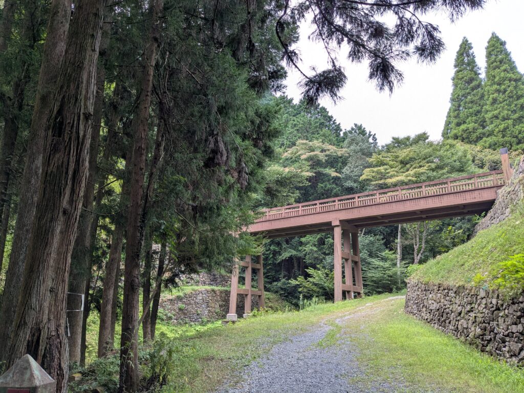 まだ連日のように猛暑日が続いていた8月25日。ついたのは高尾駅。ここから八王子城跡までバスと徒歩で向かいます。バスといってもそこまで長くない距離なので、歩こうと思えば歩ける距離ではありますが、そこからさらに山登りがあると考えると、バスを使ったほうが賢明でしょう。実際、最寄りのバス停で降りてから向かうまでの上り坂が本当にきつかったです。汗を流しながら15分ほど歩き、ようやく山のふもとに着きました。八王子城は山城。ここから山頂付近まで登らなくてはなりません。ですが、いざ登り始めると意外や意外。山の中は涼しく、風が吹けばかなり快適でした。また、道がある程度整備されておりちょっとしたハイキングにはちょうどいいかもしれません。道なりに進んで行くと…見えてくるのが曳橋です。